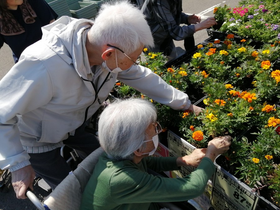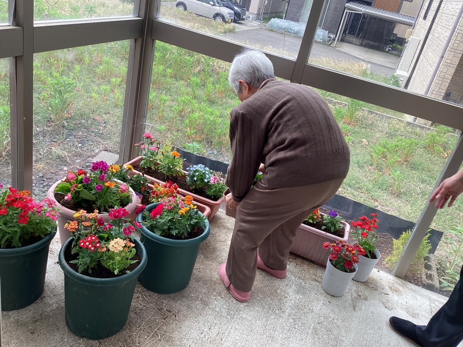 やすらぎの杜では暖かい時期になると、プランターにお花を植えます!