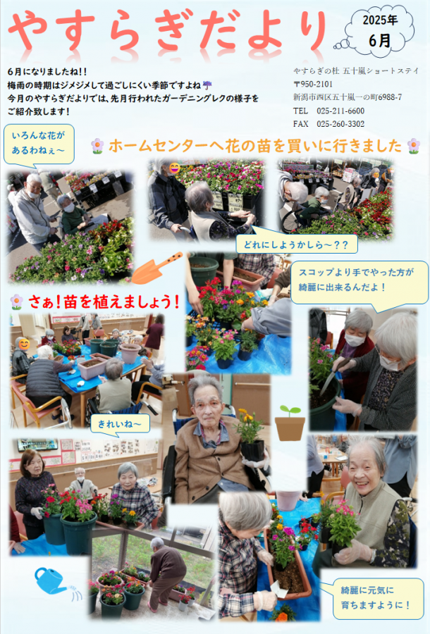 今月のやすらぎだよりでは、5月に行われたガーデニングレクの様子をご紹介しています。