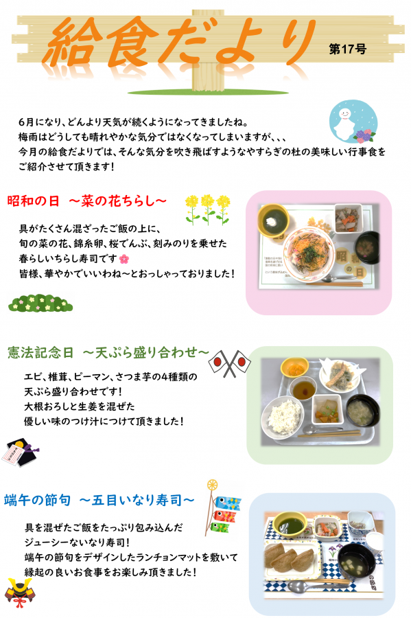 給食だよりでは、やすらぎの杜で提供させて頂いた行事食をご紹介しております!
