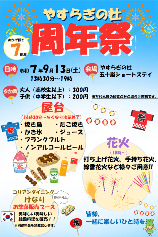 やすらぎの杜では、9月13日(土)に周年祭を開催致します!!