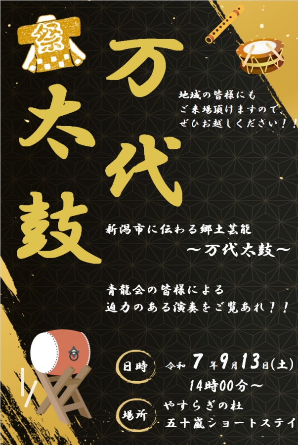 屋台にヨーヨー釣り、万代太鼓の演奏など盛りだくさんです!
