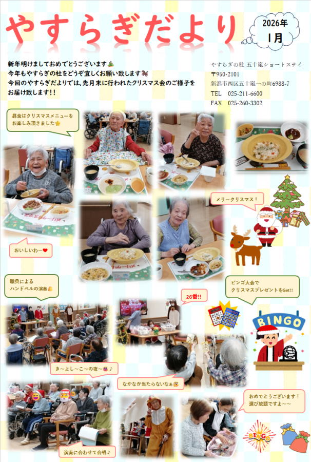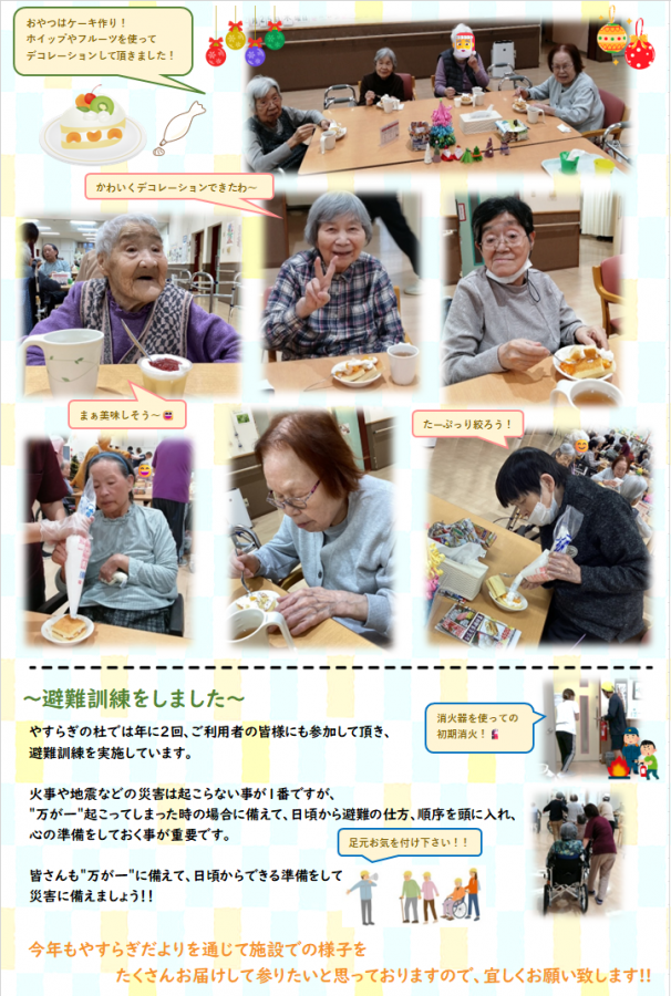 やすらぎだよりでは、年末に行われたクリスマス会のご様子をご紹介させて頂いております!