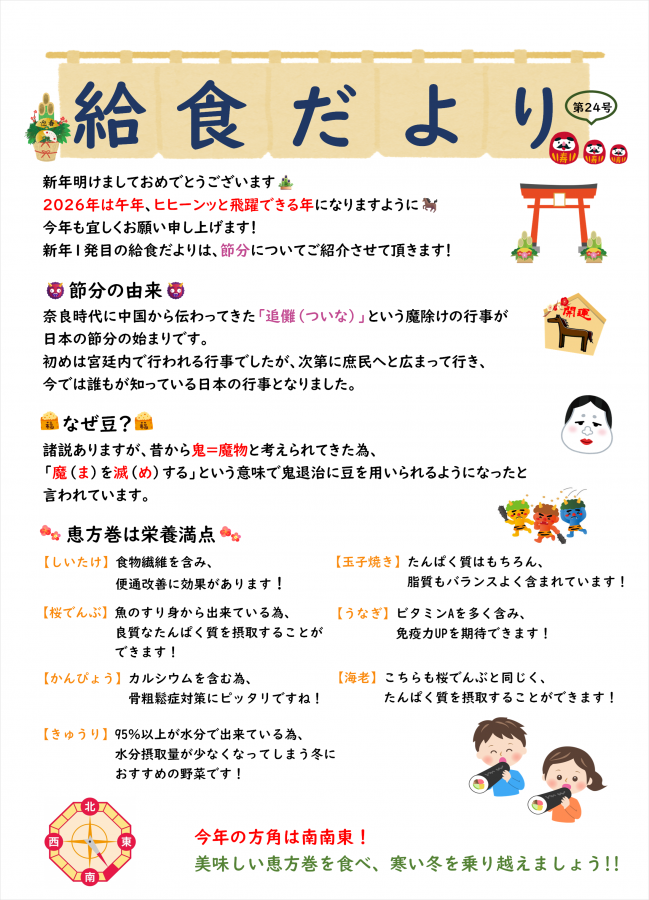 2026年1号目のやすらぎだより・給食だよりのご紹介です!