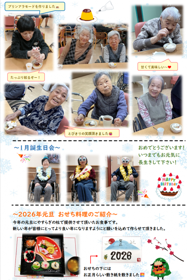やすらぎだよりでは、先月行われた新年会の様子をご紹介させて頂いております!