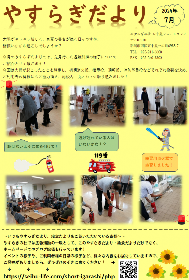 今回の給食だよりでは、やすらぎの杜で年に2回行っている避難訓練の様子をご紹介しています!