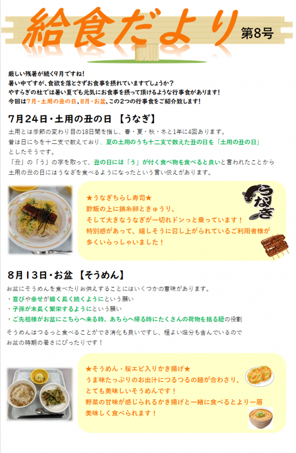 今回は7月・土曜の丑の日、8月・お盆の行事食についてご紹介しています!