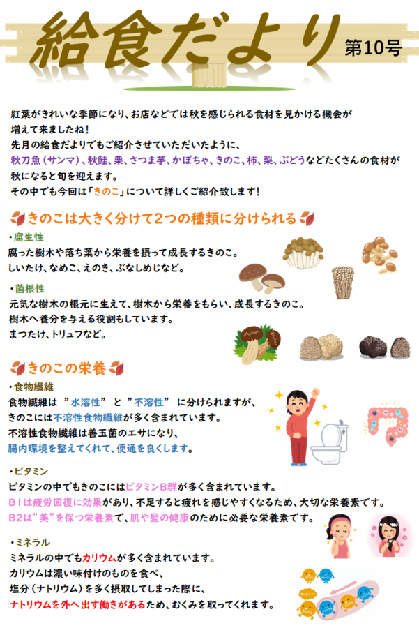 給食だよりは、秋の味覚 ” きのこ ” がテーマです!