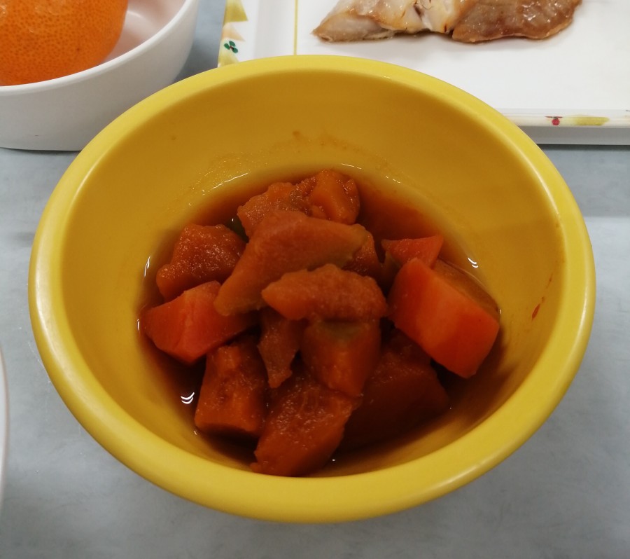 やすらぎの杜では、昼食にかぼちゃの煮物を食べ、お風呂に柚子を浮かべて柚子風呂に入りました♨