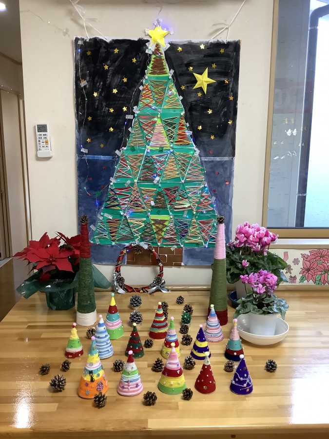 好きな毛糸と好きな飾りをつけて思い思いの🎄クリスマスツリー🎄を利用者様に作っていただきました。