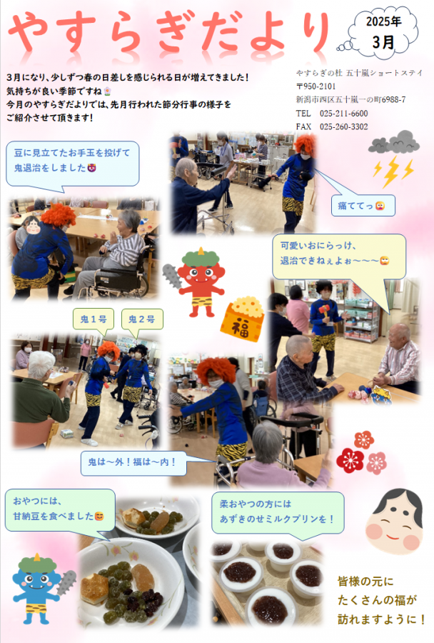 今月のやすらぎだよりでは、先月行われた節分行事の様子をご紹介しております!