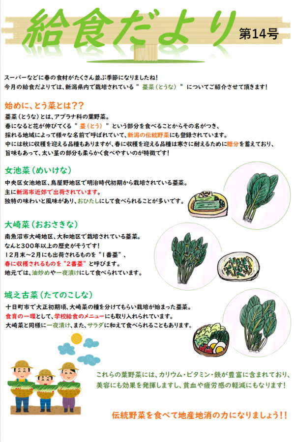 給食だよりでは、”とう菜” についてご紹介しております!