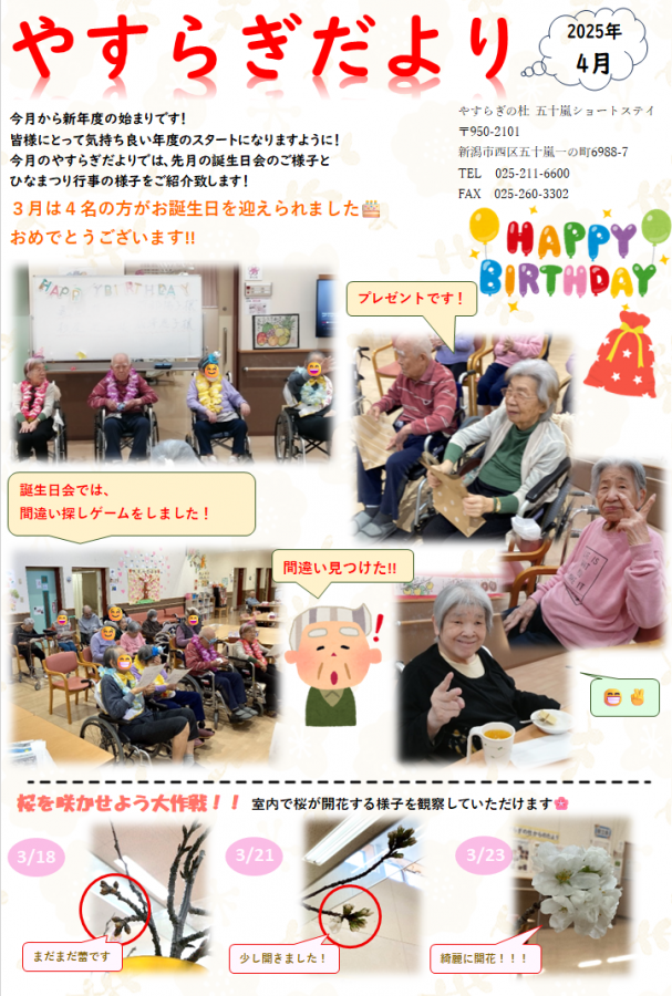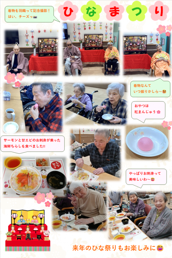 今月のやすらぎだよりでは、先月行われたひな祭り行事の様子をご紹介させて頂いております!