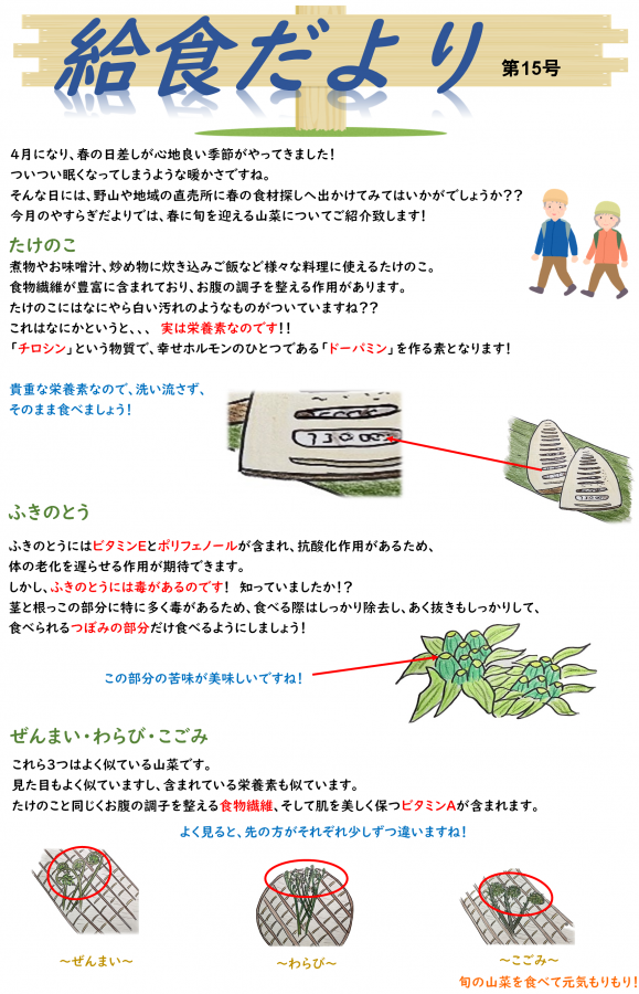 給食だよりでは、春に旬を迎える食材についてのご紹介です!